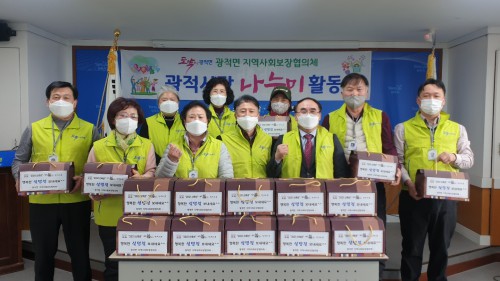 ¾çÁֽà ±¤Àû¸é Áö¿ª»çȸº¸ÀåÇùÀÇü(À§¿øÀå ³²º´±æ, °øµ¿À§¿øÀå ÀÌżø)´Â Áö³ 5ÀÏ ½ÅÃà³â ¼³ ¸íÀýÀ» ¾ÕµÎ°í ‘±¤Àû»ç¶û ³ª´©¹Ì’ Çà»ç¸¦ ½Ç½ÃÇß´Ù.
