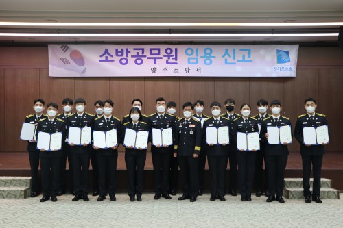 ¾çÁÖ¼Ò¹æ¼(¼Àå ¹Ú¹Ì»ó)´Â Áö³ 15ÀÏ ½Å±Ô ¼Ò¹æ°ø¹«¿ø 17¸í¿¡ ´ëÇÑ ÀÓ¿ë½Å°í¸¦ ¸¶ÃÆ´Ù. À̳¯ ÀÓ¿ë½ÄÀº ¼Òµ¶ ¹× °Å¸®µÎ±â¸¦ ÅëÇØ Äڷγª19 ¹æ¿ª¼öÄ¢À» ÁöŲ °¡¿îµ¥ ÁøÇàÇß´Ù.