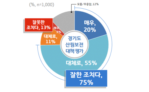 °æ±âµµ¹Î 4¸í Áß 3¸íÀÌ °æ±âµµ°¡ Áö³ÇØ ÃßÁøÇÑ Ã»Á¤»ê¸²º¸Àü ´ëÃ¥¿¡ ´ëÇØ ±àÁ¤ÀûÀ¸·Î Æò°¡ÇÑ´Ù´Â Á¶»ç°á°ú°¡ ³ª¿Ô´Ù.