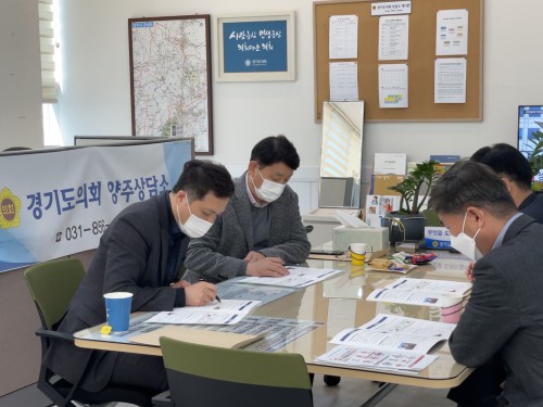 °æ±âµµÀÇȸ ¹ÚÀ縸 ÀÇ¿ø(´õºÒ¾î¹ÎÁÖ´ç·¾çÁÖ2), ¹ÚÅÂÈñ ÀÇ¿ø(´õºÒ¾î¹ÎÁÖ´ç·¾çÁÖ1)Àº 10ÀÏ °æ±âµµÀÇȸ ¾çÁÖ»ó´ã¼Ò¿¡¼ ¾çÁÖ¼Ò¹æ¼Àå ¿Ü 1¸íÀÌ Âü¼®ÇÑ °¡¿îµ¥ ¾çÁֽà ¼Ò¹æ ÁÖ¿äÇö¾È ¹× ¾÷¹«°èȹ °ü·ÃÇÑ Á¤´ãȸ¸¦ °¡Á³´Ù.