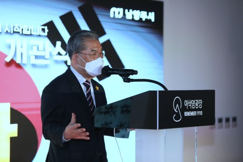 ÀÌÀçÁ¤ °æ±âµµ±³À°°¨ÀÌ 26ÀÏ ³²¾çÁֽà ¿ª»çüÇè°ü ‘¸®¸â¹ö(REMEMBER) 1910’°³°ü½Ä¿¡ Âü¼®ÇØ °³°üÀ» ÃàÇÏÇß´Ù.