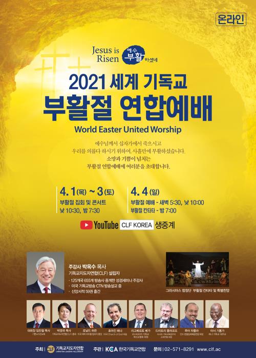 2021 ¼¼°è ±âµ¶±³ ºÎȰÀý ¿¬ÇÕ¿¹¹è¿Í ºÎȰÀý ÄŸŸ Ưº° °ø¿¬, ºÎȰÀý Áýȸ¿Í ÄܼƮ´Â À¯Æ©ºê ä³Î ‘CLF KOREA’¸¦ ÅëÇØ Âü¼®ÇÒ ¼ö ÀÖ´Ù. ÀÚ¼¼ÇÑ ³»¿ëÀº Çà»ç ȨÆäÀÌÁö(https://clf.ac/easter)¿¡¼ È®ÀÎÇÒ ¼ö ÀÖ´Ù.