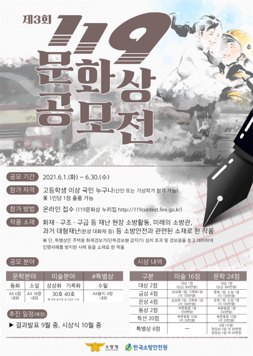 ÀÚ¼¼ÇÑ °ø¸ð ¿ä°Àº °ø¸ðÀü ¾È³» »çÀÌÆ®(https://119contest.fire.go.kr)³ª ¼Ò¹æÃ», Çѱ¹¼Ò¹æ¾ÈÀü¿ø, °æ±âµµºÏºÎ¼Ò¹æÀ糺»ºÎ ´©¸®Áý¿¡¼ È®ÀÎÇÒ ¼ö ÀÖ´Ù.