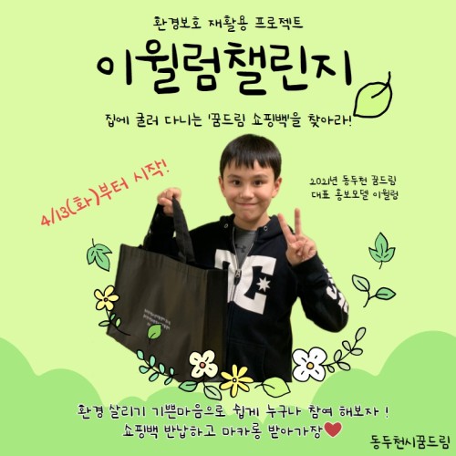 µ¿µÎõ½ÃÇб³¹Ûû¼Ò³âÁö¿ø¼¾ÅÍ(¼¾ÅÍÀå Ȳ»ó¿¬)´Â 4¿ù 13ÀϺÎÅÍ 4¿ù 30ÀϱîÁö ȯ°æº¸È£ ÀçȰ¿ë ÇÁ·ÎÁ§Æ® ‘ÀÌÀª·³ 縰Áö’¸¦ ½ÃÀÛÇÑ´Ù.