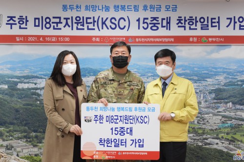 ÃÖ¿ë´ö ½ÃÀåÀº “±×µ¿¾È KSC 15Áß´ë°¡ ÈÄ¿ø»Ó¸¸ ¾Æ´Ï¶ó Áö¿ªÀÇ ¾î·Á¿î ÀÌ¿ôÀ» À§ÇÑ ±èÀ峪´®Çà»ç, Ȧ¸ö¾î¸£½Å ¹è½ÄºÀ»ç, Áý¼ö¸®, µµ¹è µî ´Ù¾çÇÑ ºÀ»çȰµ¿À» ½Ç½ÃÇÏ¿©, Ç×»ó °¨»çÇÑ ¸¶À½À» °®°í ÀÖ¾ú´Ù”¸ç, “ÀÌ·¸°Ô ÀÛÀº ÇൿÀÌ ´©±º°¡¿¡°Ô´Â Å« Èñ¸ÁÀÌ µÉ ¼ö ÀÖÀ½À» ¸ö¼Ò ½ÇÃµÇØÁÖ°í ÀÖ´Â ¹Ì8±ºÁö¿ø´Ü 15Áß´ë ´ë¿øµé¿¡°Ô °¨»çÀλ縦 ÀüÇÑ´Ù”°í °í¸¶¿òÀ» ÀüÇß´Ù.