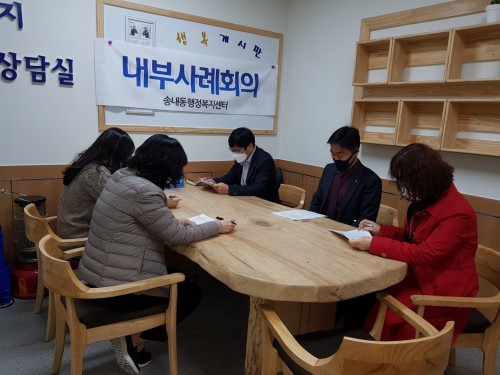 µ¿µÎõ½Ã ¼Û³»µ¿ ÇàÁ¤º¹Áö¼¾ÅÍ´Â Áö³ 16ÀÏ º¹ÇÕÀûÀÎ ¹®Á¦·Î À§±â¿¡ Ã³ÇØ ÀÖ´Â °¡±¸¿¡ ´ëÇØ, ½Å¼ÓÇÏ°í ½ÇÁúÀûÀ¸·Î µµ¿òÀ» ÁÙ ¼ö ÀÖ´Â ¸ÂÃãÇü º¹Áö¼ºñ½º Áö¿øÀ» À§ÇÑ ³»ºÎ »ç·ÊȸÀǸ¦ ½Ç½ÃÇß´Ù.