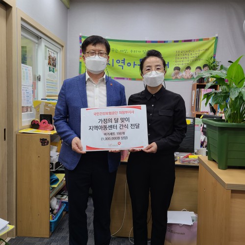 ±¹¹Î°Ç°º¸Çè°ø´Ü ÀÇÁ¤ºÎÁö»ç(Áö»çÀå È«ÁøÈ£)´Â °¡Á¤ÀÇ ´Þ 5¿ùÀ» ¸ÂÀÌÇÏ¿© »çȸ°øÇå Ȱµ¿ÀÇ ÀÏȯÀ¸·Î °ü³» Áö¿ª¾Æµ¿¼¾ÅÍ 6°³¼Ò ¾Æµ¿ 190¸í¿¡°Ô Çܹö°Å ¼¼Æ®¸¦(¹é¸¸ ¿ø »ó´ç) Àü´ÞÇÏ¿´´Ù.