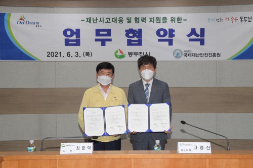 ÃÖ¿ë´ö ½ÃÀåÀº “Äڷγª¿Í °°Àº ÃÊÀ¯ÀÇ Àç³À¸·Î ÀÎÇØ ¾ÈÀü¿¡ ´ëÇÑ ½Ã¹ÎÀÇ °ü½É°ú ¿å±¸°¡ ±× ¾î´À ¶§º¸´Ù Àý½ÇÇÑ ½Ã±âÀÎ ¸¸Å, À̹ø ¾÷¹«Çù¾àÀ» ÅëÇØ ±¹Á¦Àç³¾ÈÀüÁøÈï¿øÀÌ »ç¸í°¨À» °®°í, ‘Áñ°Å¿î º¯È ´õ ÁÁÀº µ¿µÎõ’À» ¸¸µå´Âµ¥, Áß¿äÇÑ ¿ªÇÒÀ» ÇØÁֽñ⸦ ±â´ëÇÑ´Ù”°í ¸»Çß´Ù.