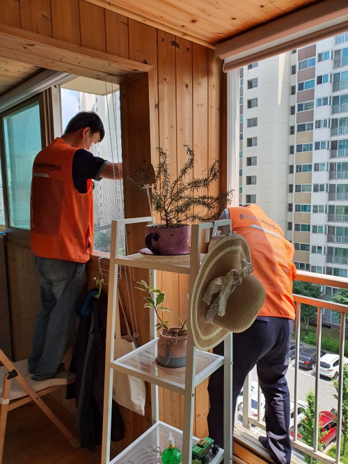 µ¿µÎõ½Ã ÀÚ¿øºÀ»ç¼¾ÅÍ(ÀÌÇÏ ÀÚ¿øºÀ»ç¼¾ÅÍ)´Â Áö³ 19ÀÏ ¼Û³»ÁÖ°ø 1´ÜÁö ¾ÆÆÄÆ®¿¡¼ ºñµÑ±â·Î ÀÎÇØ ºÒÆíÀ» °Þ´Â ÀÔÁÖ¹ÎÀ» ´ë»óÀ¸·Î, ºñµÑ±â¿ÍÀÇ °ø»ý¿¡ °üÇÑ ¼³¹®À» ÇÏ´Â ÇÑÆí, ½Ç¿Ü±â ºñµÑ±â Â÷´Ü¸Á ¼³Ä¡ ½Åû ¹× ½ÅûÇÑ ¼¼´ë¿¡ ÇÑÇØ Â÷´Ü¸ÁÀ» ¼³Ä¡ÇÏ´Â ÀÛ¾÷À» ½Ç½ÃÇß´Ù.