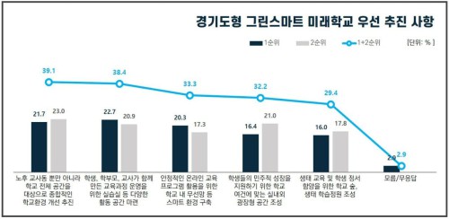 ‘°æ±âÇü ±×¸°½º¸¶Æ®¹Ì·¡Çб³ »ç¾÷ ¿ì¼± ÃßÁø’ÀÌ ÇÊ¿äÇÑ »çÇ×À¸·Î´Â ¡ãÁ¾ÇÕÀûÀÎ Çб³È¯°æ °³¼± ÃßÁø(39.1%), ¡ã´Ù¾çÇÑ È°µ¿ °ø°£ ¸¶·Ã(38.4%), ¡ã½º¸¶Æ® ȯ°æ ±¸Ãà(33.3%), ¡ã½Ç³»¿Ü ±¤ÀåÇü °ø°£ Á¶¼º(32.2%), ¡ãÇб³ ½£ Á¶¼º(29.4%)À̶ó°í ´äÇß´Ù.
