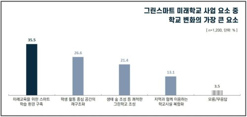 ¶Ç ‘±×¸°½º¸¶Æ®¹Ì·¡Çб³ »ç¾÷ÀÌ Çб³ º¯È¿¡ ¹ÌÄ¥ ¿µÇâ’À¸·Î´Â ¡ã¹Ì·¡±³À°À» À§ÇÑ ½º¸¶Æ® ÇнÀ ȯ°æ ±¸Ãà(35.5%), ¡ãÇлý Ȱµ¿ Á᫐ °ø°£ÀÇ À籸Á¶È(26.6%), ¡ã»ýÅ ½£ Á¶¼º µî ÄèÀûÇÑ ±×¸° Çб³ Á¶¼º(21.4%), ¡ãÁö¿ª°ú ÇÔ²² ÀÌ¿ëÇÏ´Â Çб³ ½Ã¼³ º¹ÇÕÈ(13.1%)¶ó°í ´äÇß´Ù.