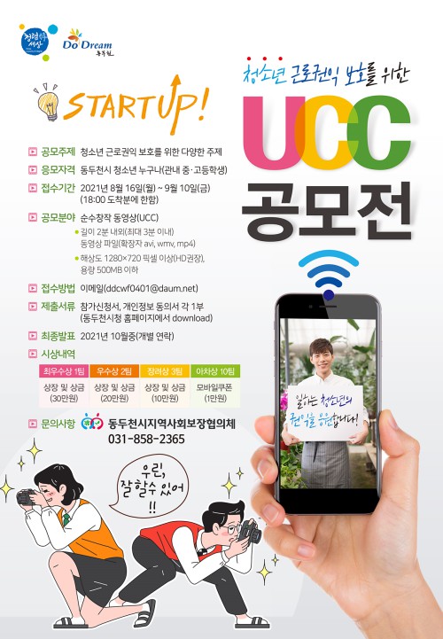 û¼Ò³âµéÀÇ ±Ù·Î±ÇÀÍ Çâ»óÀ» À§ÇØ ½Ç½ÃÇÏ´Â UCC °ø¸ðÀü°ú °ü·ÃµÈ ÀÚ¼¼ÇÑ ³»¿ëÀº µ¿µÎõ½Ãû ȨÆäÀÌÁö(www.ddc.go.kr)¸¦ ÅëÇØ È®ÀÎÇÒ ¼ö ÀÖÀ¸¸ç, Âü°¡½Åû¼ ¹× °³ÀÎÁ¤º¸µ¿ÀǼ¸¦ ³»·Á¹Þ¾Æ ÀÛ¼º ÈÄ µ¿¿µ»ó°ú ÇÔ²² Á¦ÃâÇÏ¸é µÈ´Ù.