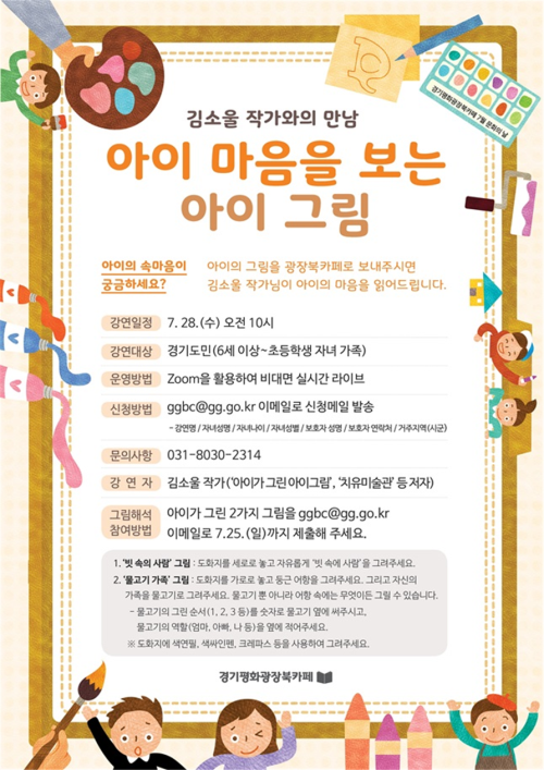 À̾î 28ÀÏ ¼ö¿äÀÏ ¿ÀÀü 10½Ã¿¡´Â 'Ä¡À¯¹Ì¼ú°ü', '³ª¿Í ¸¸³ª´Â ½Ã°£'ÀÇ ÀúÀÚ ±è¼Ò¿ï ÀÛ°¡¸¦ ÃÊû, ±×¸²À» ÅëÇØ ¾ÆÀÌÀÇ ¸¶À½À» ÀоîÁÖ´Â ‘¾ÆÀÌ ¸¶À½À» º¸´Â ¾ÆÀÌ ±×¸²’ °¿¬À» ÁøÇàÇÑ´Ù.