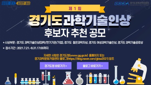 ‘Á¦1ȸ °æ±âµµ °úÇбâ¼úÀλó’Àº ÃÑ 6°³ ºÎ¹®º° °¢ 1¸í¾¿ ¼±Á¤µÉ ¿¹Á¤À¸·Î ¡ã°æ±âµµ °úÇбâ¼úÀλó(´ëÇÐ ºÎ¹®/¿¬±¸±â°ü ºÎ¹®/±â¾÷ ºÎ¹®) ¡ã°æ±âµµ ÀþÀº °úÇÐÀλó ¡ã°æ±âµµ ¿©¼º°úÇбâ¼úÀλó ¡ã°æ±âµµ °úÇбâ¼ú°ø·Î»ó µîÀ¸·Î ³ª´²Á® ÀÖ´Ù. ¼ö»óÀÚ¿¡°Ô´Â °æ±âµµÁö»ç ¸íÀÇÀÇ »óÆÐ°¡ ÁÖ¾îÁø´Ù.
