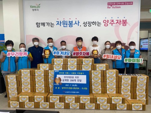¾çÁֽà ¾çÁÖ¹«Áö°³ºÀ»çȸ(ȸÀå Á¶±Ôö)´Â 20Àϰú 23ÀÏ ¾çÀϰ£ °ü³» Ãë¾à°¡Á¤¿¡ Áߺ¹ ¸ÂÀÌ ¿©¸§ º¸¾ç½Ä »ï°èÅÁ 200°³¸¦ Àü´ÞÇß´Ù°í ¹àÇû´Ù.