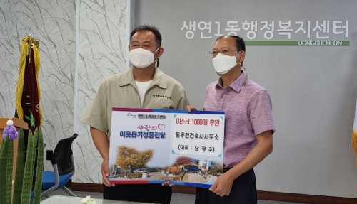 µ¿µÎõ½Ã »ý¿¬1µ¿ ÇàÁ¤º¹Áö¼¾ÅÍ´Â Áö³ 22ÀÏ, µ¿µÎõ°ÇÃà»ç»ç¹«¼Ò(´ëÇ¥ ³²Á¤ÁÖ)°¡ °ü³» Ãë¾à°èÃþÀ» À§ÇÏ¿© ¸¶½ºÅ© 1,000ÀåÀ» ±âŹÇß´Ù°í ¹àÇû´Ù.
