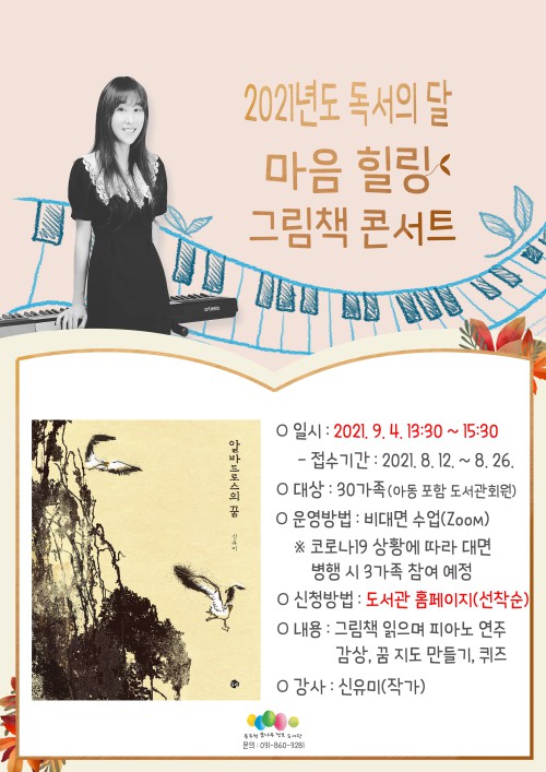 À̳¯ 9¿ù µ¶¼ÀÇ ´Þ Ư°À¸·Î ½ÅÀ¯¹Ì ÀÛ°¡¿Í <¾Ë¹ÙÆ®·Î½ºÀÇ ²Þ>À» ¾Æ¸§´Ù¿î ÇÇ¾Æ³ë ¿¬ÁÖ¿Í ÇÔ²² ÀÐ°í ³ªÀÇ ²Þ Áöµµ ¸¸µé±â, ÄûÁ Ç®¾îº¸´Â ½Ã°£À» °®´Â´Ù.