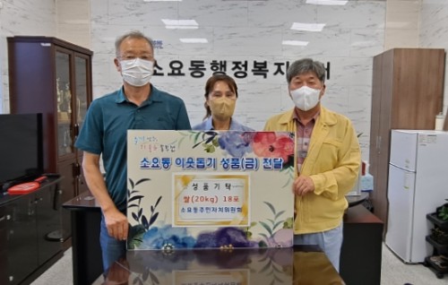 ¼Ò¿äµ¿ÁÖ¹ÎÀÚÄ¡À§¿øÈ¸´Â Áö¿ªÀÇ ¾î·Á¿î ÀÌ¿ôÀ» À§ÇØ ÁÖ±âÀûÀ¸·Î ºÀ»çȰµ¿À» À̾î¿À°í ÀÖÀ¸¸ç, ƯÈ÷ ±Ý¹ø Ãß¼®À» ¸Â¾Æ Áö¿ª ³» Àú¼Òµæ ¼Ò¿Ü°èÃþÀ» À§ÇØ ÀÚ¹ßÀûÀ¸·Î ±â±ÝÀ» ¸¶·ÃÇÏ¿© ¿ÂÁ¤À» ³ª´©°Ô µÇ¾ú´Ù.