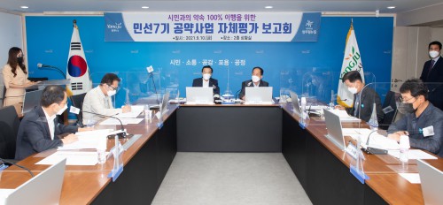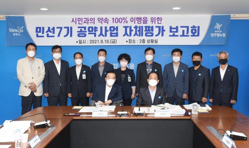 ¾çÁÖ½Ã(½ÃÀå À̼ºÈ£)´Â 10ÀÏ ½Ãû »óȲ½Ç¿¡¼ ‘¹Î¼± 7±â °ø¾à»ç¾÷ ÀÚüÆò°¡ º¸°íȸ’¸¦ ¿°í »ç¾÷º° ÁøÇàÇöȲÀ» ÁßÁ¡ Á¡°ËÇÏ´Â ½Ã°£À» °¡Á³´Ù.