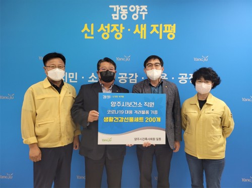 ¾çÁֽà º¸°Ç¼Ò¿¡¼´Â Áö³ 15ÀÏ ¾çÁÖÁö¿ª°ÇÃà»çȸ(ȸÀå ±è³²¿µ)¿¡¼ Ãß¼®À» ¸Â¾Æ Äڷγª19 ´ëÀÀ°ú ¹é½ÅÁ¢Á¾¿¡ ³ë°í°¡ ¸¹Àº ±Ù¹«ÀÚ¿Í ÀÇ·áÁøÀ» °Ý·ÁÇϱâ À§ÇØ »ýȰ°Ç°¼±¹°¼¼Æ® 200°³¸¦ Àü´ÞÇß´Ù°í ¹àÇû´Ù.