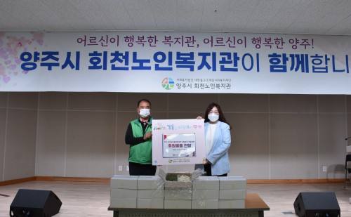 Á÷Àå·°øÀå»õ¸¶À»¿îµ¿¾çÁÖ½ÃÇùÀÇȸ(ȸÀå ¿À¼ö¿µ)´Â 9¿ù17ÀÏ ¾çÁֽà ȸõ³ëÀκ¹Áö°ü(°üÀå ÁÖ¹ÎÁ¤)¿¡ ¾î¸£½ÅµéÀ» À§ÇÑ ÀýÆí 60kg¸¦ ±âÁõÇß´Ù.