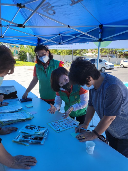 À̳¯ »õ¸¶À»ºÎ³àȸ¿øµéÀº ¼Ò¿äµ¿ ÇàÁ¤º¹Áö¼¾ÅÍ ÀÔ±¸¿¡ Çà»ç ºÎ½º¸¦ ¼³Ä¡ÇÏ°í ½Ã¹Î¿¡°Ô ‘2050 ź¼ÒÁ߸³ ¹× ¿Ã¹Ù¸¥ ºÐ¸®¼ö°Å’ Àü´ÜÁö¸¦ ³ª´²ÁÖ¸ç ź¼ÒÁ߸³ ½ÇõÀ» ´çºÎÇß´Ù.