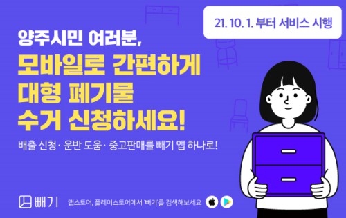 ¾çÁÖ½Ã(½ÃÀå À̼ºÈ£)´Â ¿À´Â 10¿ù 1ÀϺÎÅÍ ´ëÇüÆó±â¹°À» ¼Õ½±°Ô ½Å°íÇÏ°í °áÁ¦ÇÏ´Â ¸ð¹ÙÀÏ ¾Û ‘»©±â’ÀÇ ¿î¿µÀ» ½Ç½ÃÇÑ´Ù.