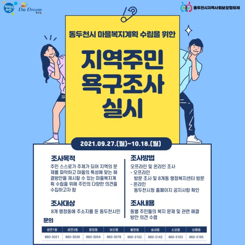 µ¿µÎõ½Ã´Â 2022³âµµ µ¿µÎõ½Ã ¸¶À»º¹Áö°èȹ¼ö¸³À» À§ÇØ 9¿ù 27ÀϺÎÅÍ 10¿ù 18ÀϱîÁö ÇÑ ´Þ°£ Áö¿ªÁֹΠ¿å±¸Á¶»ç¸¦ ½Ç½ÃÇÑ´Ù.