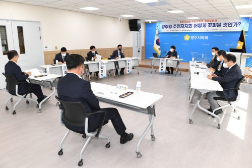 ¾çÁÖ½ÃÀÇȸ(ÀÇÀå Á¤´ö¿µ)´Â 30ÀÏ ¿ÀÈÄ 2½Ã, ¾çÁÖ½ÃÀÇȸ ´ëȸÀǽǿ¡¼ ÀÚÄ¡ºÐ±Ç 2.0½Ã´ë¸¦ ²ÉÇÇ¿ï ÁÖ¹ÎÀÚġȸ Á¤Ã¥Åä·Ðȸ¸¦ ¿°í, À¯Æ©ºê·Î ½Ç½Ã°£ »ýÁß°èÇß´Ù.