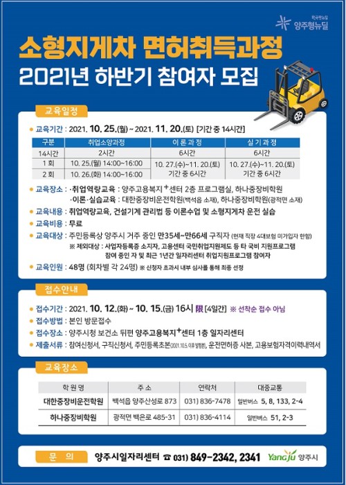 ¾çÁֽà ÀÏÀÚ¸®¼¾ÅÍ´Â ¿À´Â 12ÀϺÎÅÍ 15ÀϱîÁö 2021³â ¼ÒÇüÁö°ÔÂ÷ ¸éÇãÃëµæ°úÁ¤¿¡ Âü¿©ÇÒ ±³À°»ýÀ» ¸ðÁýÇÑ´Ù°í ¹àÇû´Ù.