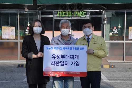 µ¿µÎõ½Ã´Â Áö³ 19ÀÏ °øµ¿¸ð±Ýȸ¿Í Çù¾÷À¸·Î ÁøÇàÇÏ´Â ‘Èñ¸Á³ª´® Çູµå¸²’ÂøÇÑÀÏÅÍ °¡ÀÔ½ÄÀ» À¯Á¤ºÎ´ëÂî°³¿¡¼ ÁøÇàÇß´Ù.