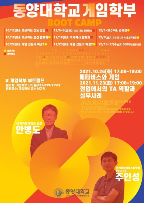 ƯÈ÷, Áö³ 19ÀÏ µ¿¾ç´ëÇб³ µ¿µÎõ Ä·ÆÛ½º¿¡¼ °³ÃÖµÈ 'µ¿¾ç´ëÇб³ °ÔÀÓÇкΠºÎƮķÇÁ(BOOT CAMP)'°¡ È£ÆòÀ» ¹Þ°í ÀÖÀ¸¸ç, À̹ø ºÎƮķÇÁ Çà»ç¿¡´Â Çö¾÷ °ÔÀÓ»ê¾÷ Àü¹®°¡µéÀÌ Âü°üÇÑ °¡¿îµ¥ °ÔÀÓÇкΠÇлýµéÀÌ ±×°£ Á¦ÀÛÇØ¿Â ‘°ÔÀÓÇÁ·ÎÁ§Æ®’¿¡ ´ëÇØ Á÷Á¢ Å©¸®Æ½Çϰí Åä·ÐÇÏ´Â µî ¼ºÈ²¸® °³ÃֵǾú´Ù.
