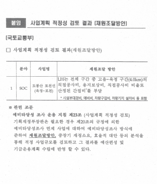 ±¹¹ÎÀÇÈûÀº “¾çÁֽð¡ ÀÓÀç±Ù ¾çÁÖ½ÃÀÇ¿ø¿¡°Ô Á¦ÃâÇÑ ÀÚ·á¿¡ ÀÇÇϸé, ±âȹÀçÁ¤ºÎ´Â 2019³â 11¿ù »ç¾÷°èȹ ÀûÁ¤¼º °ËÅä °á°ú LH°¡ µµºÀ»ê-Æ÷õ¼±ÀÇ °íÀ¾-¿ÁÁ¤ ±¸°£ 4§° Á÷Á¢°ø»çºñ, ¿ëÁöº¸»óºñ, Á÷Á¢°ø»çºñ ºñÀ²·Î »êÁ¤µÈ °£Á¢ºñ¸¦ ºÎ´ãÇÏ´Â ³»¿ëÀÇ Àç¿øÁ¶´Þ ¹æ¾ÈÀ» ±¹Åä±³ÅëºÎ¿¡ Å뺸Çß°í, 12¿ù ´ëµµ½Ã±Ç ±¤¿ª±³ÅëÀ§¿øÈ¸°¡ °æ±âµµ¿¡ Å뺸ÇÑ ¹Ù ÀÖ´Ù”°í ¹àÇû´Ù.