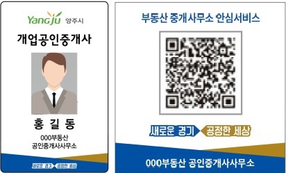 ÀÌ¿¡ µû¶ó Áß°³ÀÇ·ÚÀÎÀº °øÀÎÁß°³»çÀÇ ¼º¸í, »çÁø µîÀÌ ±âÀçµÈ ¸íÂûÀ» ÅëÇØ º»ÀÎ ¿©ºÎ¸¦ È®ÀÎÇÒ ¼ö ÀÖÀ¸¸ç ºÎµ¿»ê Áß°³»ç¹«¼Ò ¿Ü°ü¿¡ ºÎÂøµÈ QRÄÚµå ½ºÆ¼Ä¿´Â ‘°æ±âµµºÎµ¿»êÆ÷ÅÐ’°ú ¿¬°èµÅ Áß°³»ç¹«¼ÒÀÇ ¸íΰú µî·Ï¹øÈ£ µîÀÇ ÇöȲÀÌ ³ªÅ¸³ª ÀûÁ¤ µî·Ï¾÷ü ¿©ºÎ¸¦ È®ÀÎ ÈÄ ÀÌ¿ëÇÒ ¼ö ÀÖ°Ô µÆ´Ù.