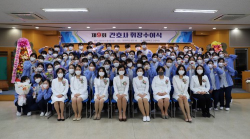 °£È£»ç ÈÖÀå ¼ö¿©½ÄÀº 4³â°£ °£È£ÇÐ À̷аú 1,000½Ã°£ ÀÌ»óÀÇ ÇöÀå½Ç½ÀÀ» ¸ðµÎ ¸¶Ä¡°í Á¹¾÷À» ¾ÕµÐ Çлýµé¿¡°Ô °£È£»ç ÈÖÀåÀ» ¼ö¿©ÇØ °£È£ÀÇ Àü¹®¼º°ú ÀÚ±à½ÉÀ» µå³ôÀÌ´Â ÀǽÄÇà»ç·Î µ¿¾ç´ë´Â 9³â° ÁøÇàÇØ ¿À°í ÀÖ´Ù.