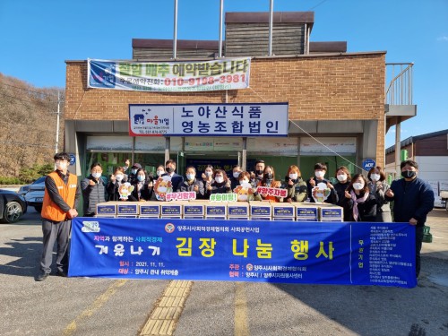 À̳¯ ÇùÀÇȸ ȸ¿ø»çµéÀº »çȸÀû±â¾÷ÀÎ ³ë¾ß»ê½Äǰ ¿µ³óÁ¶ÇÕ¹ýÀο¡ ¸ð¿© ±èÄ¡(5kg) 200¹Ú½º¸¦ Á÷Á¢ ´ã°¡ °ü³» Ãë¾à°èÃþ¿¡°Ô Àü´ÞÇß´Ù.
