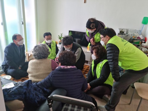 Âü¿©ÇÑ ´Üü¿øµéÀº Äڷγª19 °¨¿° ¿¹¹æÀ» À§ÇØ °³ÀÎ ¹æ¿ª¼öÄ¢À» öÀúÈ÷ ÁöŰ¸ç ¾î¸£½Å 15°¡±¸¸¦ Á÷Á¢ ¹æ¹®ÇÏ¿© Àü´ÞÇß´Ù.
