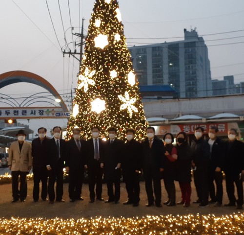 µ¿µÎõ Å«½ÃÀå ȸÀü ±³Â÷·Î ³»¿¡ ¼³Ä¡µÈ Å©¸®½º¸¶½ºÆ®¸®´Â Äڷγª19·Î ÁöÄ£ ½Ã¹ÎµéÀ» À§·ÎÇÏ°í ¿øµµ½É »ó±Ç Ȱ¼ºÈ¸¦ À§ÇØ µ¿µÎõ½ÃÀÇ ÈÄ¿øÀ¸·Î ¼³Ä¡µÆ´Ù.