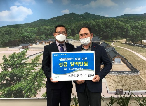 ¾çÁֽà ±¤Àû¸é(¸éÀå ±Ç¼ø¿ë)Àº Áö³ 19ÀÏ ‘Æ÷µ¿¸® ÇÑ¿ì(´ëÇ¥ ÀÌÇÑ¿ì)’¿¡¼ Ãë¾à°èÃþÀÇ µû¶æÇÑ °Ü¿ï³ª±â¸¦ À§ÇÑ ¿ÂǰķÆäÀÎ ¼º±Ý 100¸¸ ¿øÀ» ±âŹÇß´Ù°í ¹àÇû´Ù.