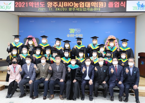¾çÁÖ½Ã(½ÃÀå À̼ºÈ£)´Â Áö³ 24ÀÏ ¾çÁֽóó¾÷±â¼ú¼¾ÅÍ ´ë°´ç¿¡¼ Á¹¾÷»ý°ú ³»ºó µî 90¿©¸íÀÌ Âü¿©ÇÑ °¡¿îµ¥ Á¦16±â ¾çÁÖ½ÃBIO³ó¾÷´ëÇаú Á¦11±â BIO³ó¾÷´ëÇпø Á¹¾÷½ÄÀ» ¼ºÈ²¸®¿¡ ¸¶ÃÆ´Ù.