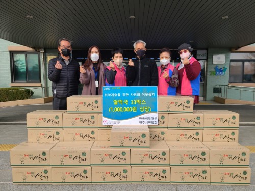 ¾çÁֽûýȰ°³¼±È¸(ȸÀå Àå°è¼÷)´Â Áö³ 11¿ù 29ÀÏ ¾çÁֽà ÀÚ¿øºÀ»ç¼¾Å͸¦ ÅëÇØ Áö¿ª ¼Ò¿Ü°èÃþÀ» À§ÇØ 100¸¸¿ø »ó´çÀÇ ½Ò ¶±±¹ 33¹Ú½º¸¦ ±âºÎÇß´Ù.
