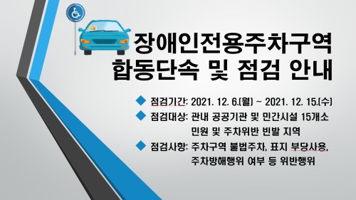 ½Ã °ü°èÀÚ´Â “À̹ø ÇÕµ¿Á¡°ËÀ» ÅëÇØ Àå¾ÖÀÎÀü¿ëÁÖÂ÷±¸¿ª Á¦µµ¿¡ ´ëÇÑ ½Ã¹Î ÀνÄÀ» °³¼±ÇÏ°í ¿Ã¹Ù¸¥ ÁÖÂ÷¹®È¸¦ È®¸³Çϰڴٔ¸ç “½Ã¹Î ¿©·¯ºÐ²²¼µµ º¸ÇàÀå¾ÖÀÎÀÌ ÁÖÂ÷ÀåÀ» ÀÌ¿ëÇϴµ¥ ºÒÆíÇÔÀÌ ¾øµµ·Ï °ü·Ã ¹ý±Ô Áؼö¿¡ µ¿ÂüÇØ´Þ¶ó”°í ´çºÎÇß´Ù.