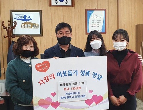 µ¿µÎõ½Ã ºÒÇöµ¿ ÇàÁ¤º¹Áö¼¾ÅÍ¿¡¼´Â Áö³ 8ÀÏ, ±¤¾Ï¾î¸°ÀÌÁý(ÀÌ¿¬¿Á ¿øÀå)¿¡¼ ¾î·Á¿î ÀÌ¿ôÀ» µ½°í ½Í´Ù¸ç ¼º±Ý 135¸¸¿øÀ» ºÒÇöµ¿ ÇàÁ¤º¹Áö¼¾ÅÍ(µ¿Àå ±èÁöÀÏ)¿¡ ±âŹÇß´Ù°í ¹àÇû´Ù.