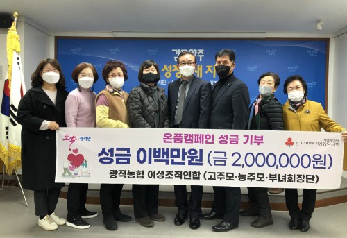 ¾çÁֽà ±¤Àû¸é(¸éÀå ±Ç¼ø¿ë)Àº Áö³ 8ÀÏ ¾çÁֽà ±¤Àû³óÇù »êÇÏ ¿©¼ºÁ¶Á÷¿¬ÇÕ(°íÁÖ¸ð, ³óÁÖ¸ð, ºÎ³àȸ)¿¡¼ Ãë¾à°èÃþÀÇ µû¶æÇÑ °Ü¿ï³ª±â¸¦ µ½±â À§ÇØ ¿ÂǰķÆäÀÎ ¼º±Ý 200¸¸¿øÀ» ±âŹÇß´Ù°í ¹àÇû´Ù.