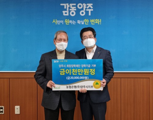 ¾çÁֽà Èñ¸ÁÀåÇÐÀç´Ü(ÀÌ»çÀå ÀÓÃæºó)Àº Áö³ 8ÀÏ NH³óÇùÀºÇà ¾çÁÖ½ÃÁöºÎ(ÁöºÎÀå ¿ÀÁÖÇÐ)¿¡¼ ÀåÇбâ±Ý 2,000¸¸¿øÀ» ±âºÎÇß´Ù°í ¹àÇû´Ù.