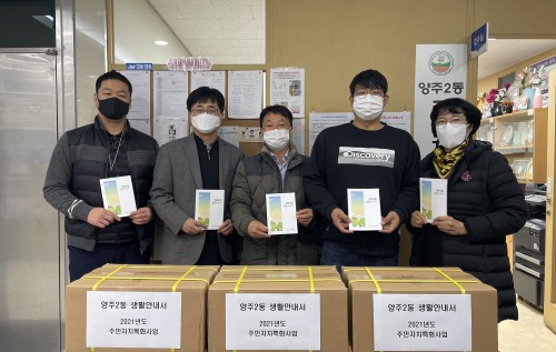 ¾çÁֽà ¾çÁÖ2µ¿(µ¿Àå À̵οµ)Àº ¾çÁÖ2µ¿ ÁÖ¹ÎÀÚÄ¡À§¿øÈ¸(À§¿øÀå ÀÌÀºÃ¶)¿¡¼ 2021³â ÁÖ¹ÎÀÚÄ¡ ƯȻç¾÷ÀÎ ‘¿ì¸® ¸¶À» ¾Ë¸®±â »ç¾÷’À» ÃßÁøÇß´Ù°í ¹àÇû´Ù.