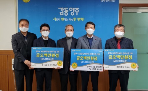 ¾çÁֽà Èñ¸ÁÀåÇÐÀç´Ü(ÀÌ»çÀå ÀÓÃæºó)Àº 14ÀÏ ¾çÁֽýü³°ü¸®°ø´Ü(ÀÌ»çÀå ÀÌÀçÈ£), µðµõµ¹ºÀ»ç´Ü(´ÜÀå Àüż±), (ÁÖ)¼¼¸²ÀÌ¿£¾ÆÀÌ(´ëÇ¥ Á¶¸¸Çü), (ÁÖ)KRC(´ëÇ¥ ¿ÀÀü½Ä)¿¡¼ °¢°¢ 500¸¸¿øÀÇ ÀåÇбâ±ÝÀ» ±âºÎÇß´Ù°í ¹àÇû´Ù.