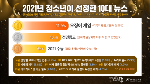 °æ±âµµ±³À°Ã»(±³À°°¨ ÀÌÀçÁ¤)ÀÌ 18ÀÏ °æ±âµµ±³À°Ã» û¼Ò³â¹æ¼Û ³²ºÎÁ¦ÀÛ¼¾ÅÍ¿¡¼ û¼Ò³â¹æ¼Û ¿¬¸» ¹æ¼ÛÁ¦ ‘ÇÏ·ç¹æ¼Û±¹’À» ¿°í, ‘û¼Ò³âÀÌ »ÌÀº 2021³â 10´ë ´º½º’ Á¶»ç °á°ú¸¦ ¹ßÇ¥Çß´Ù.