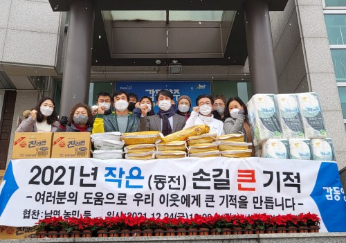 Áö¿ª ³ó°¡¿¡¼´Â ½Ê½ÃÀÏ¹Ý ¶æÀ» ¸ð¾Æ ¹é¹Ì 40kgÀ» Àü´ÞÇßÀ¸¸ç ÁֹεéÀº ÇÑ ÇØ µ¿¾È ¸ðÀº µ¿ÀüÀ¸·Î ÈÞÁö, ¶ó¸é µî »ýÇÊǰÀ» ±¸ÀÔÇØ Áö¿øÇß´Ù.