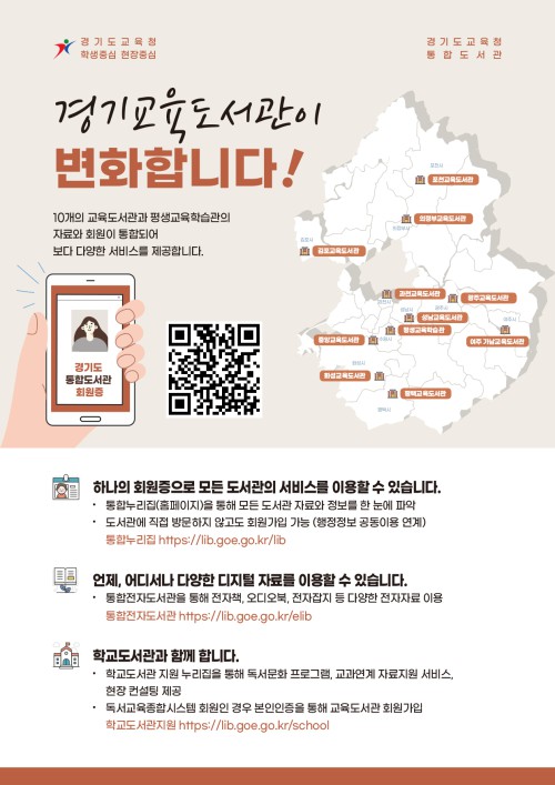ÅëÇÕÁ¤º¸½Ã½ºÅÛ(https://lib.goe.go.kr/lib)Àº ±×µ¿¾È ±³À°µµ¼°üº°·Î Á¦°øÇÑ ¼ºñ½º¸¦ ÅëÇÕÇØ µµ¼ °Ë»ö°ú ´ëÃâ, µ¶¼¹®È ÇÁ·Î±×·¥ µîÀ» ÇÑ ¹ø¿¡ »ìÆì ÀÌ¿ëÇÒ ¼ö ÀÖ´Â »ç¿ëÀÚ Á᫐ Á¤º¸ ½Ã½ºÅÛÀ¸·Î ÈÞ´ëÀüÈ µî¿¡¼µµ ÀÌ¿ëÇÒ ¼ö ÀÖ´Ù.